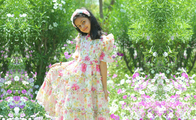 Prints have always played a vital role in kids' fashion, bringing imagination to life. From playful florals to quirky animal motifs and abstract patterns, our collections celebrate creativity through unique designs. We blend colors and textures to create garments that are visually appealing yet versatile for different occasions. Our printed styles reflect luxury attire made for magical moments.